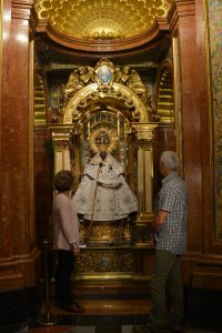 – Después de las misas es usual subir hasta su Camarín donde tendrá el encuentro personal con la Madre de Dios, allí aparecida, pudiendo besar su reliquia, al mismo tiempo que contemplar su querido Hijo, Luz del mundo, así como su rostro moreno de inefable dulzura. Un Padre Fanciscano acompaña al peregrino y le invita a orar ante la antigua imagen.